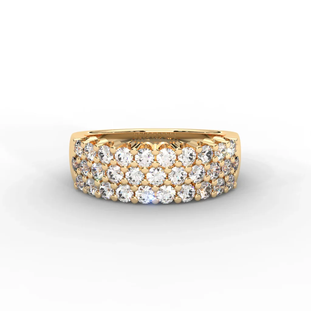 0.93 CARAT Round Moissanite Three Row Pave Anniversary Band in 14K Yellow Gold Plated